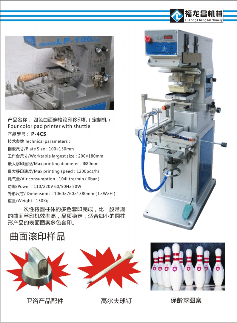 四色曲面穿梭滾印移印機(jī)P-4CS
