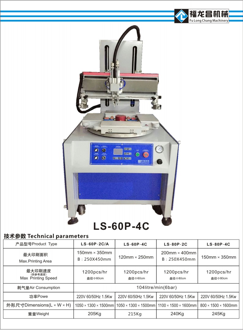 全自動(dòng)高速旋轉(zhuǎn)平面絲印機(jī)LS-60P-4C